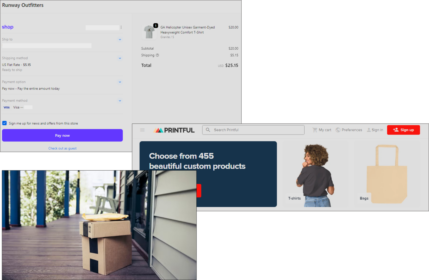 When you place an order on Runway Outfitters, the order is sent to our processing partner Printful. They custom make your order using the image and clothing item you selected, and will ship once it is complete.